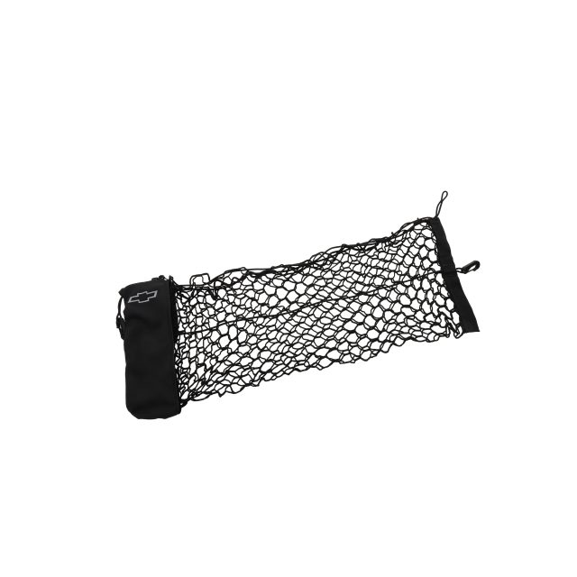 Secure items of various shapes and sizes in the cargo area of your vehicle with this Chevrolet Accessories Cargo Net. This useful cargo carrier attaches easily to the sides of the vehicle in the cargo area and helps prevent small items placed inside it from shifting while in transit or contained while opening and closing your liftgate. It can be conveniently stored in the integrated storage bag featuring the Bowtie logo when not in use. Includes one net to help protect items in the rear cargo area of your vehicle.